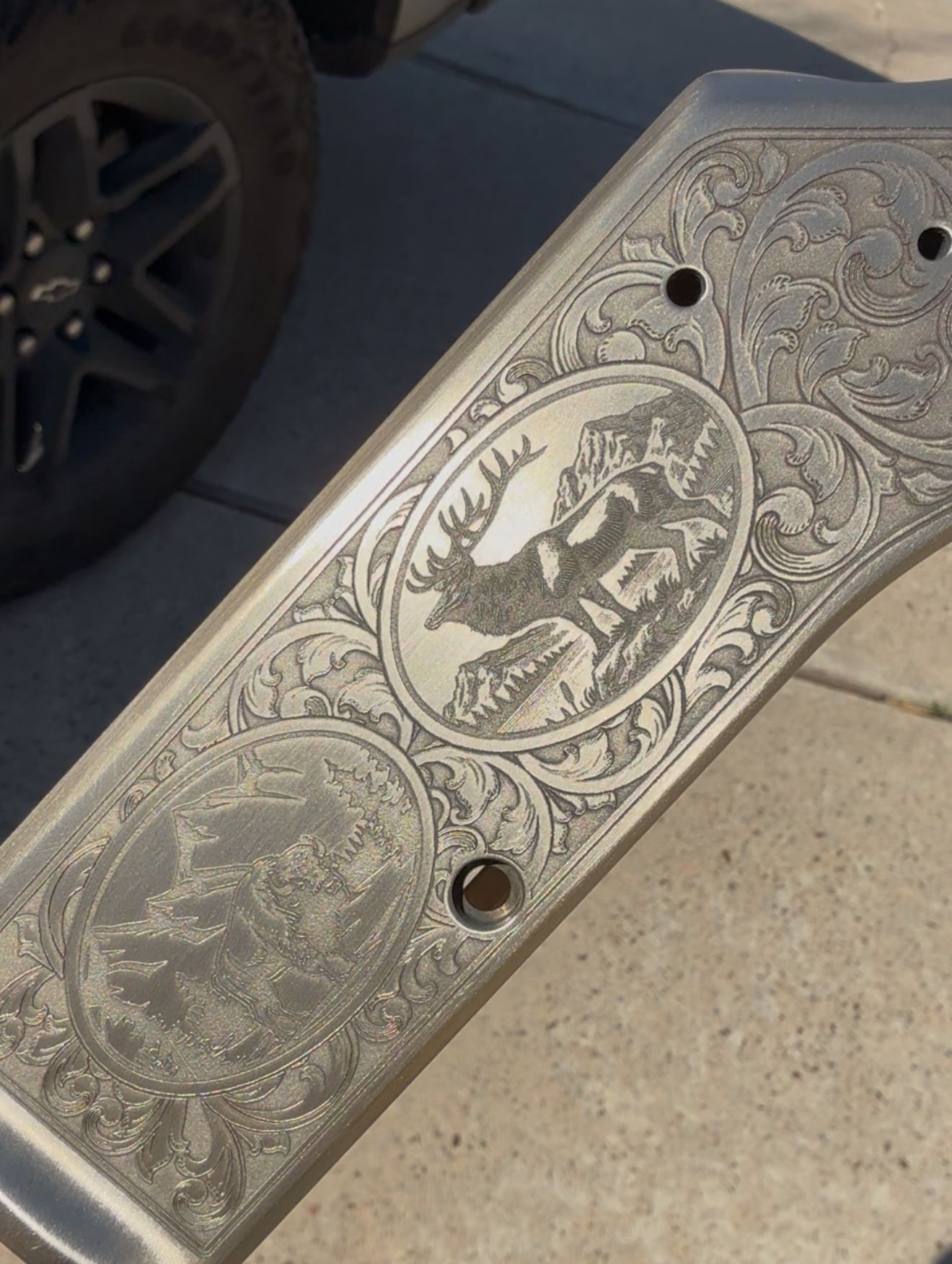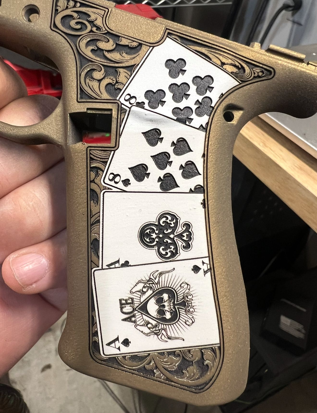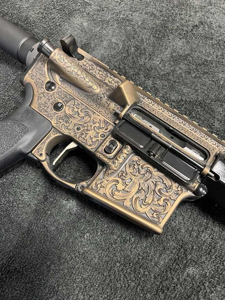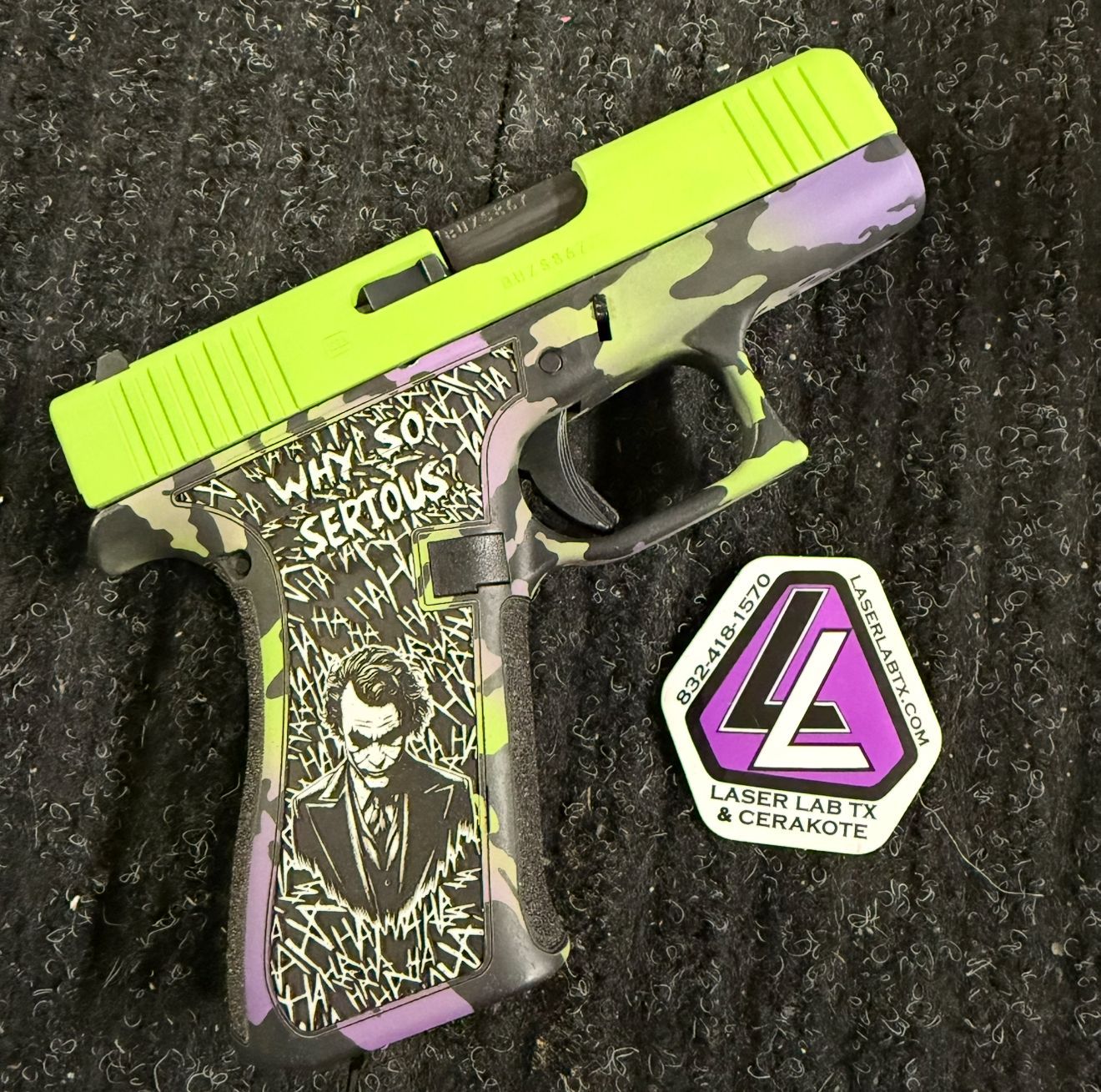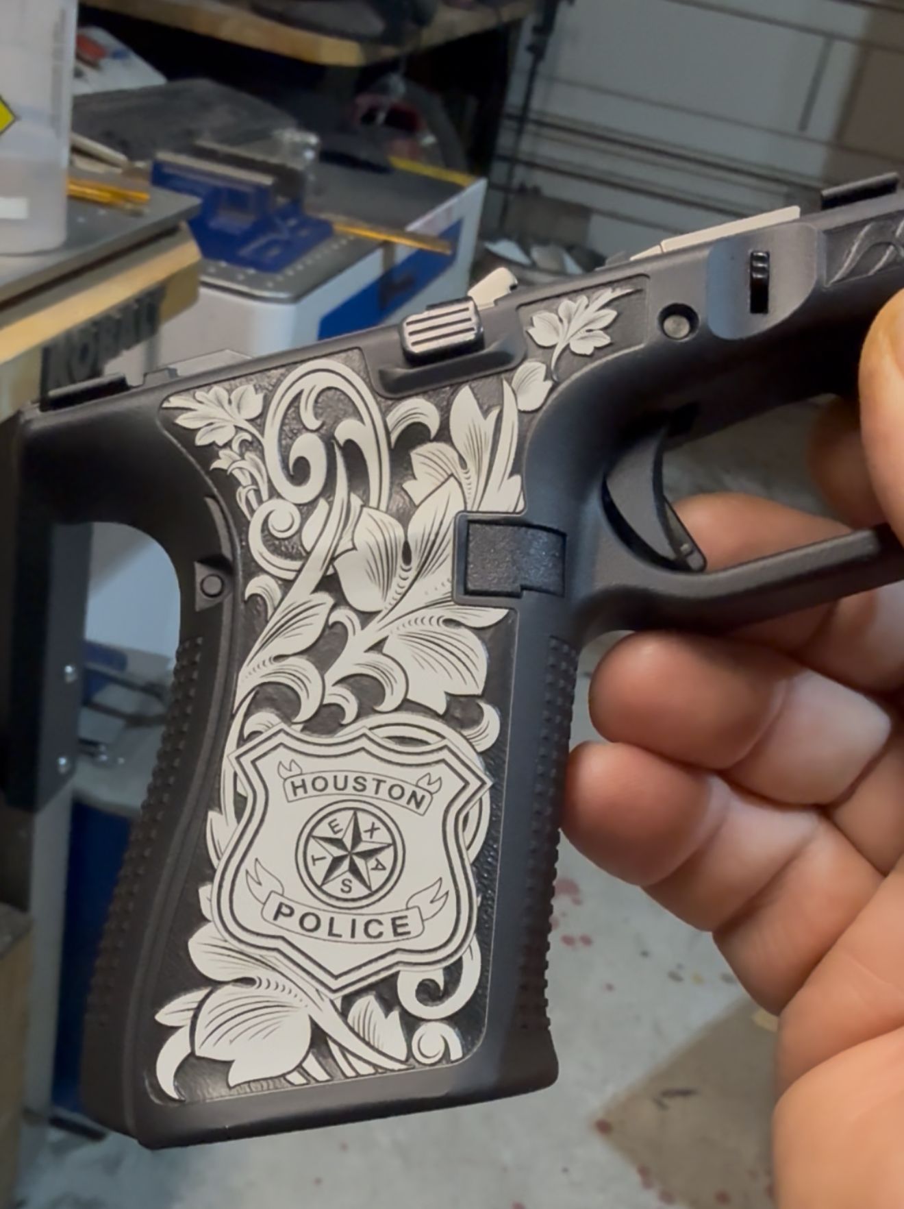 As a trusted FFL License Holder (07/02), Laser Lab TX & Cerakote specializes in high-end firearm customization and offers NFA engravings by Appt, while you wait. With graphic design software on hand and a wide array of images and custom design options, no job is too big or too small for us, and we can engrave just about anything made of metal, to meet your needs. Explore our gallery to see the precision and artistry we bring to every project, and reach out to us today to learn more.